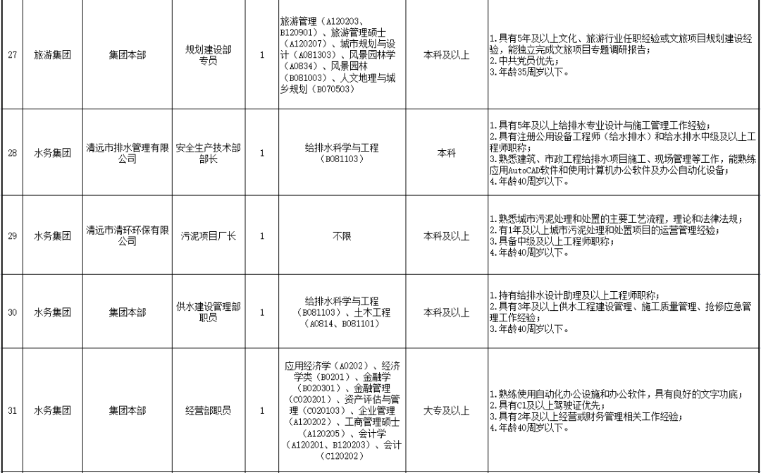 為進(jìn)一步加強(qiáng)清遠(yuǎn)市屬國有企業(yè)人才隊(duì)伍建設(shè),根據(jù)企業(yè)經(jīng)營發(fā)展需要,按照“公開、平等、競爭、擇優(yōu)”的原則,公開招聘市屬國有企業(yè)員工38人,誠意邀請符合條件的人員報(bào)名應(yīng)聘。現(xiàn)將有關(guān)事項(xiàng)公告如下: