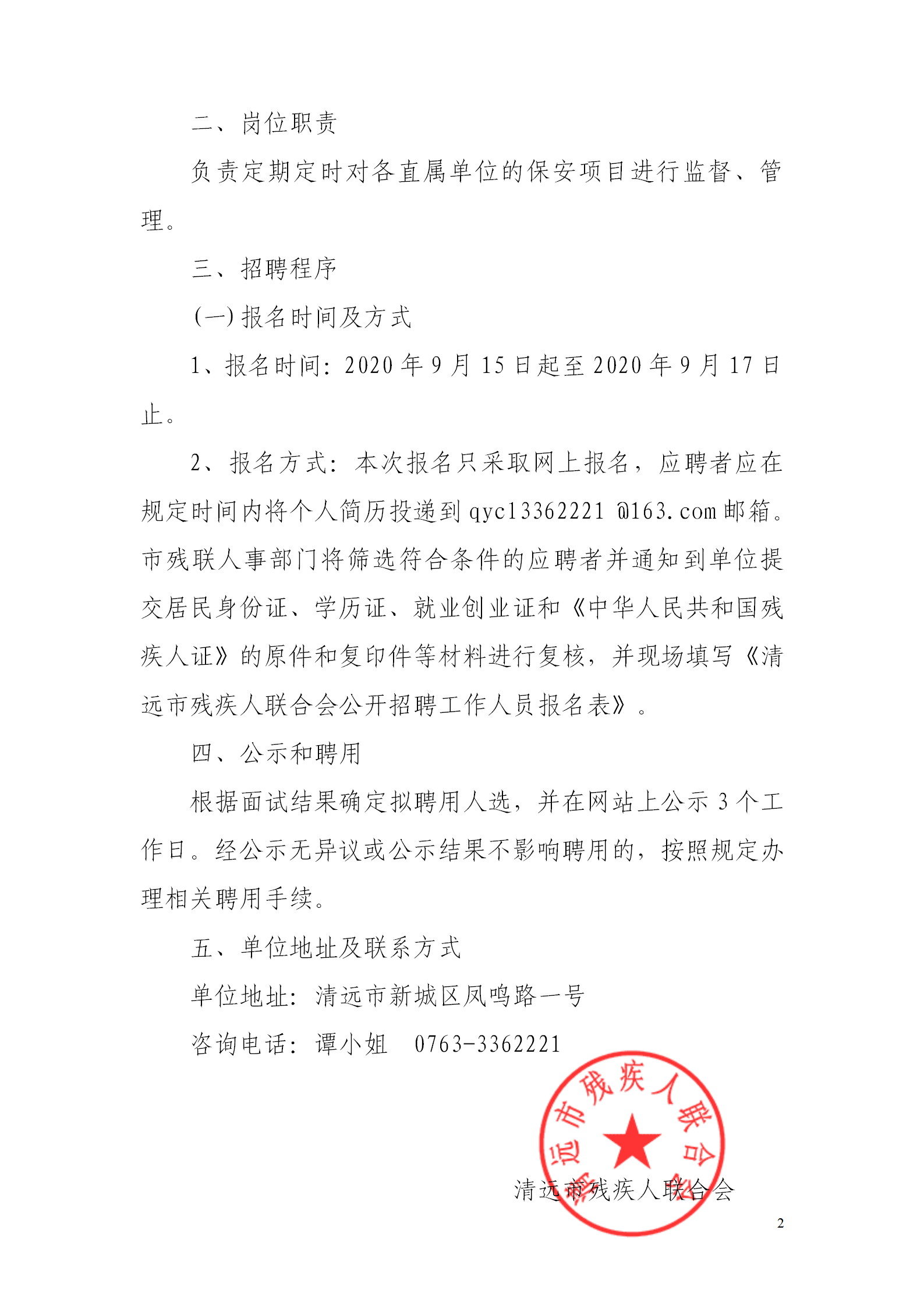 清遠(yuǎn)市殘疾人聯(lián)合會(huì)招聘工作人員公告
