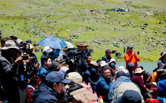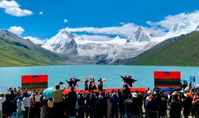 天高地闊,白云祥和,雪山巍然;清風(fēng)徐徐,青草依依,湖水湛藍(lán)。薩普雪山融水匯聚成一條清澈的河,從眼前激流直下。7月15日上午,一場別具特色的文化旅游賽事活動在這里拉開序幕。一場慷慨激昂、內(nèi)容豐富的主題推介演講,一首首悠揚高亢、直擊心靈的民族歌曲,一幕幕輕盈靈動、鏗鏘有力的特色舞姿,引得現(xiàn)場數(shù)百名觀眾一陣陣掌聲雷動和直播間數(shù)十萬用戶點贊、好評不斷,成功向區(qū)內(nèi)外推介了比如縣得天獨厚的旅游資源和特產(chǎn)資源,為旅游事業(yè)和經(jīng)濟社會高質(zhì)量夯實了宣傳工作基礎(chǔ)。