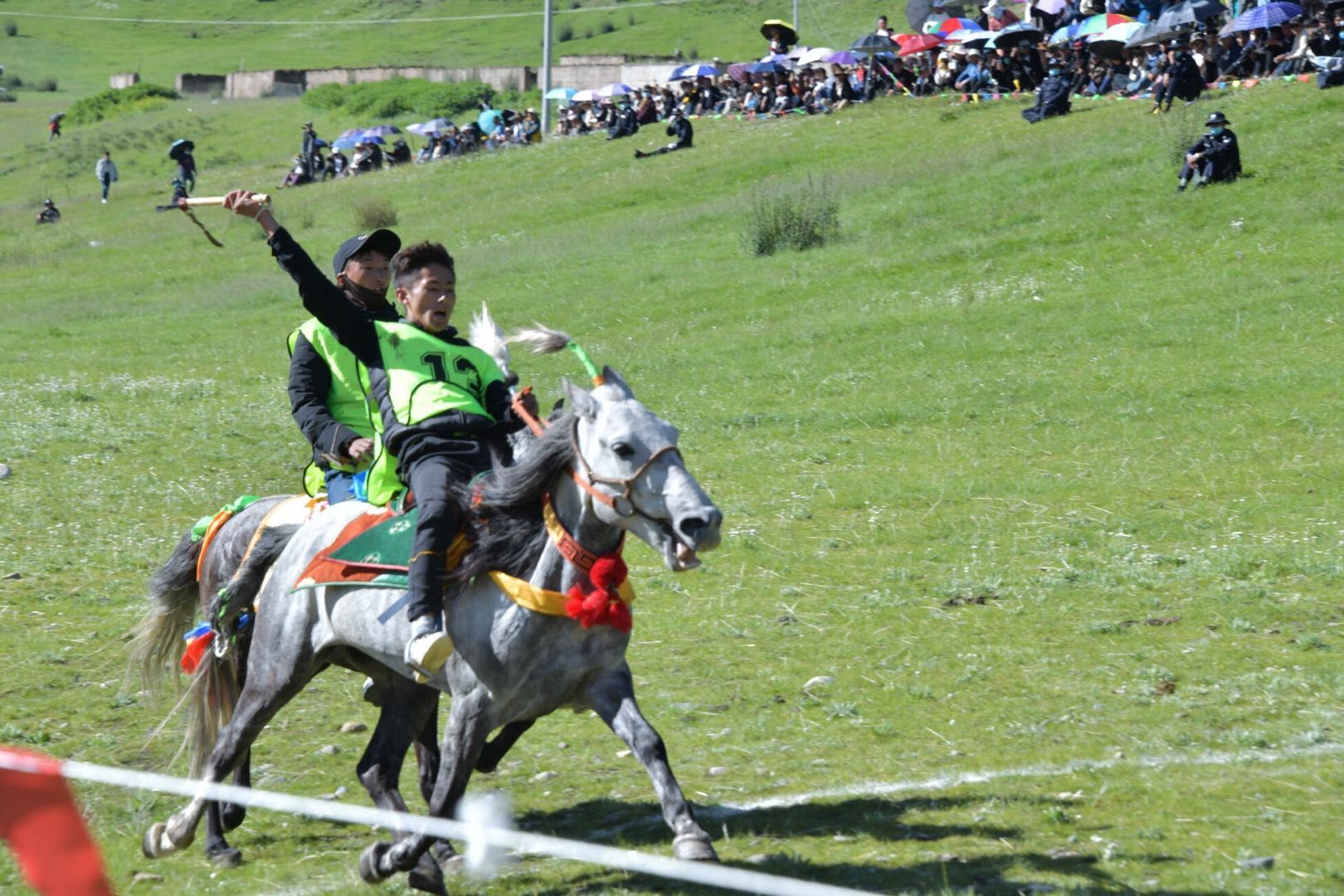 27日上午,在比如縣茶曲鄉(xiāng)措姆頂舉行場面熱烈、令人激情振奮的“走馬預(yù)賽”活動(dòng),只見賽馬場上,娜秀男兒身著節(jié)日盛裝,腳跨高大駿馬,在草原上奔馳。經(jīng)過激烈的角逐,共有24名騎手進(jìn)入7月30日的走馬決賽。