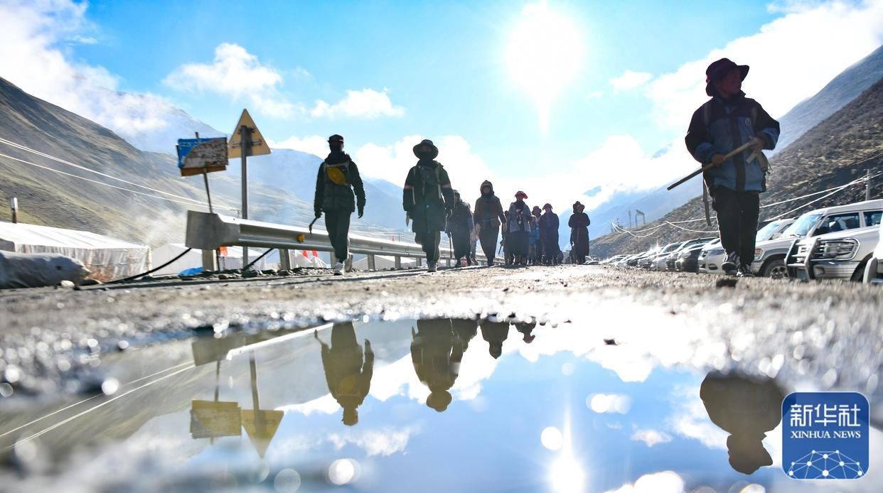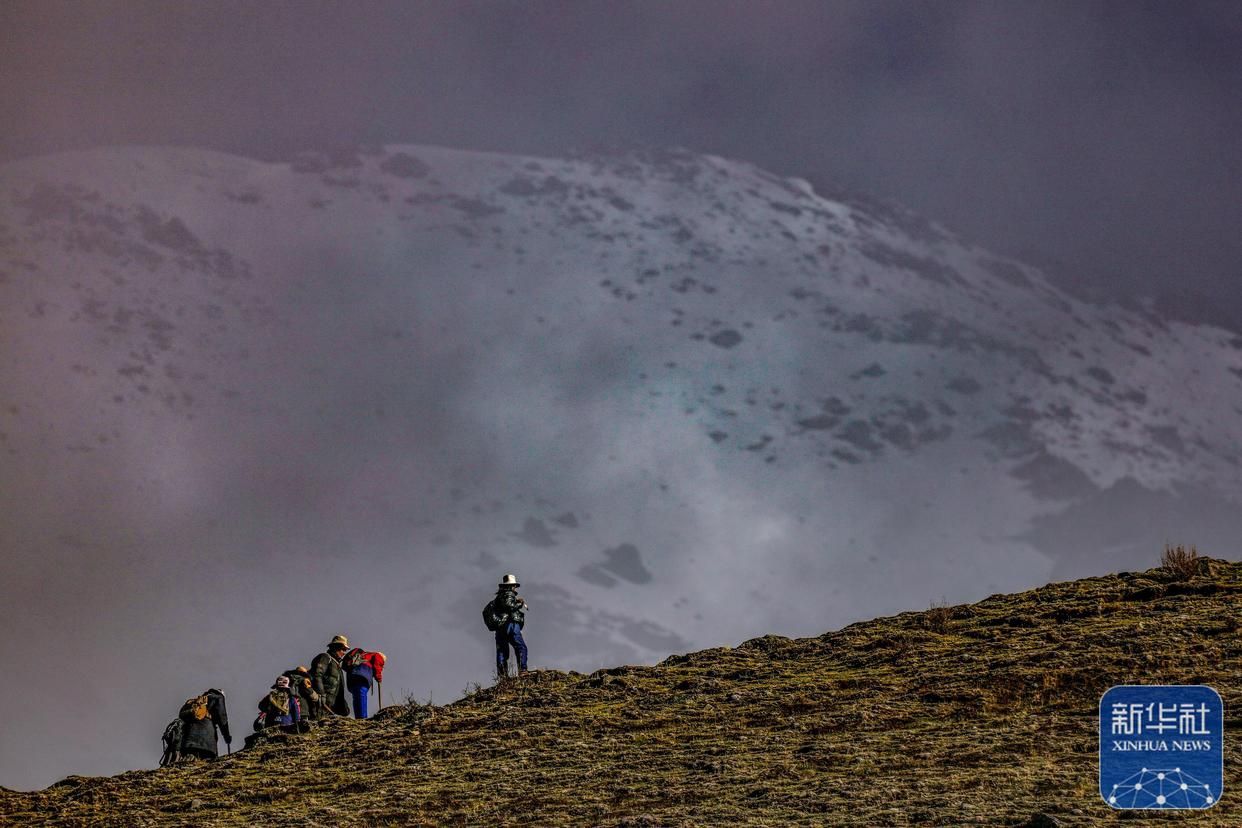 清晨,西藏那曲市比如縣良曲鄉(xiāng)然木塘村蟲草采集點的人們統(tǒng)一前往山上采集蟲草(5月26日攝)。新華社記者 姜帆 攝