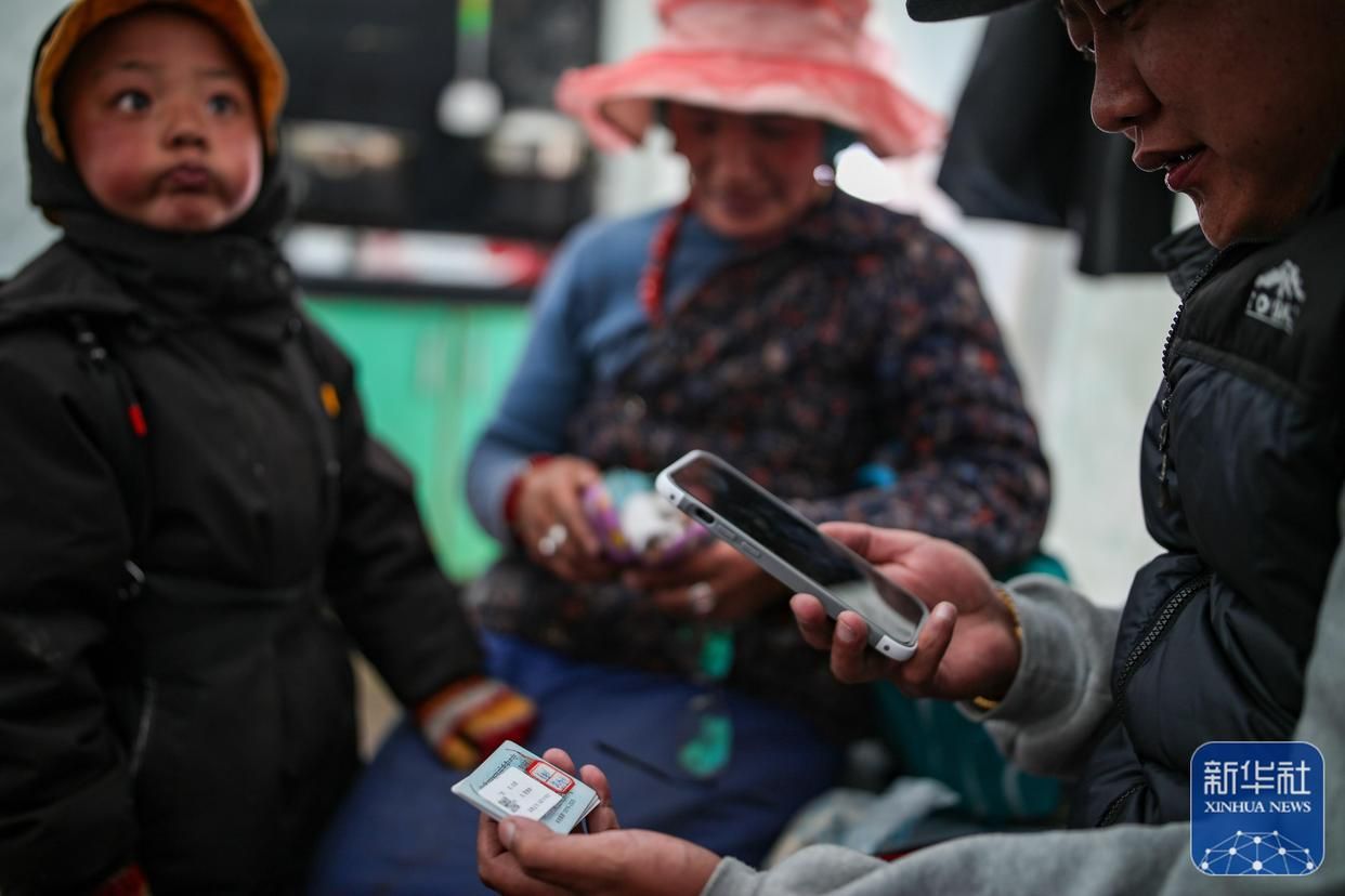 在西藏那曲市比如縣良曲鄉(xiāng)然木塘村蟲草采集點,工作人員在幫助牧民其美嘎德進行蟲草采集登記,以便進行總量統(tǒng)計(5月25日攝)。新華社記者 姜帆 攝