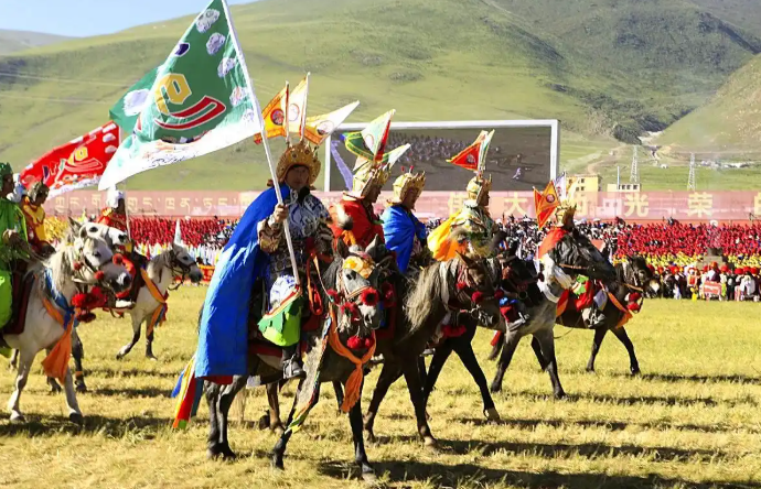 聶榮縣賽馬節(jié)則聚焦“格薩爾文化”,8月12日在聶榮鎮(zhèn)草原上,150名牧民身著格薩爾史詩人物服飾,騎著戰(zhàn)馬演繹“格薩爾王出征”情景劇。騎手們手持仿制的古代兵器,隨著藏鼓與長號(hào)的節(jié)奏變換隊(duì)形,重現(xiàn)史詩中“賽馬稱王”的經(jīng)典場景?;顒?dòng)現(xiàn)場,78歲的格薩爾說唱藝人洛桑次仁還即興演唱《格薩爾·羌塘分章》,歌聲與馬蹄聲交織,讓古老傳說在草原上鮮活起來。