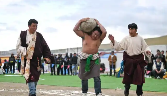 圖為那曲恰青賽馬節(jié)抱石頭比賽現(xiàn)場?!∝暩聛硭?攝